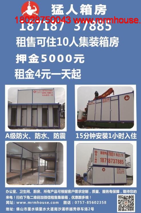 佛山钜人集装箱主营集装箱房,住人集装箱,集装箱房屋,集装箱活动房,主要为房屋建筑、地铁、市政工程、铁路、公路等基建施工工地提供住人集装箱,业务电话18028750043